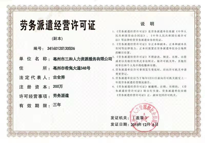 勞務(wù)派遣經(jīng)營許可證